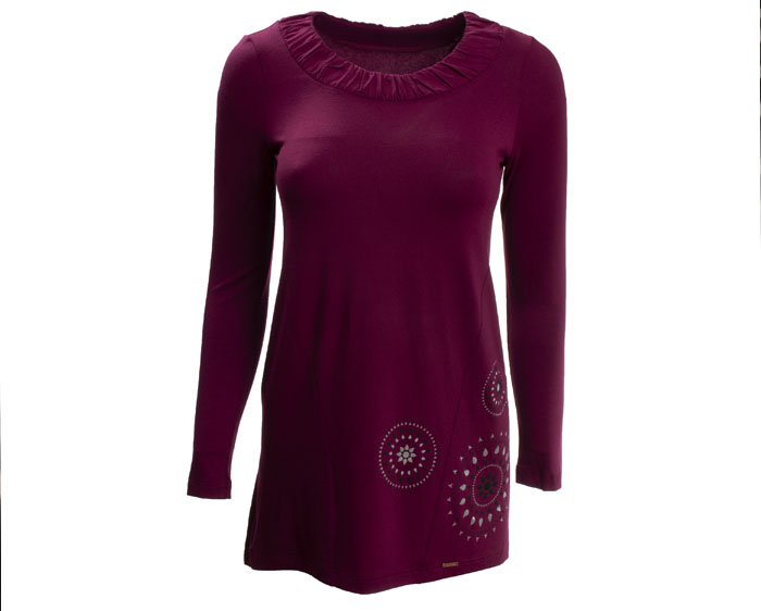 Tunika z dolgimi rokavi s potiskom ob strani in nabranim ovratnikom.