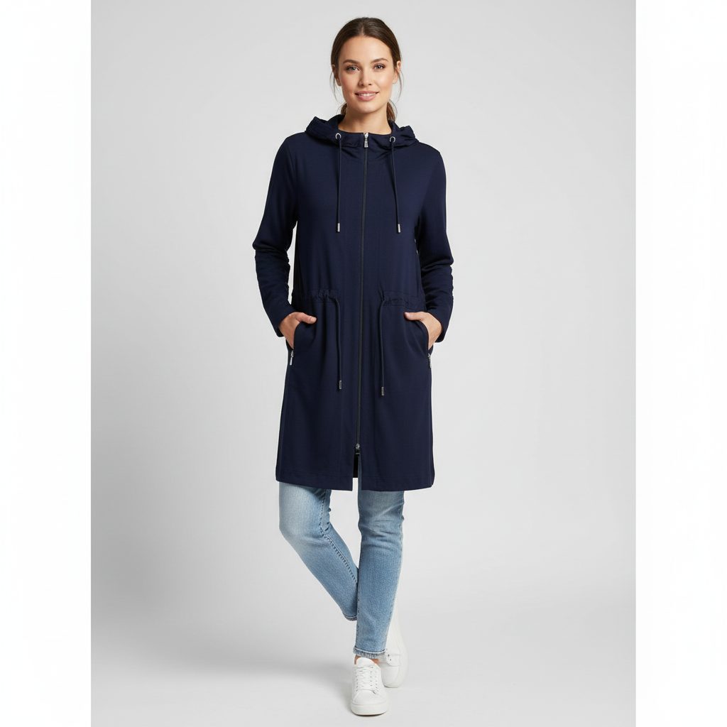 Lahkotna jopica iz viskoze z elastanom, ki združuje udobje in stil. Žepi z zadrgo, kapuca in vrvica v pasu poskrbijo za popolno prileganje in praktičnost.