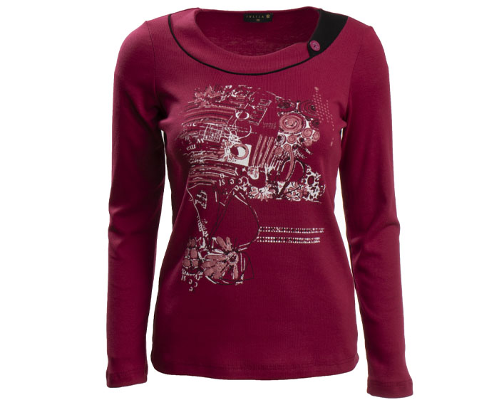 Majica z dolgimi rokavi iz udobnega 100% bombaža. Spredaj jo krasi potisk in gumb na vratnem izrezu.