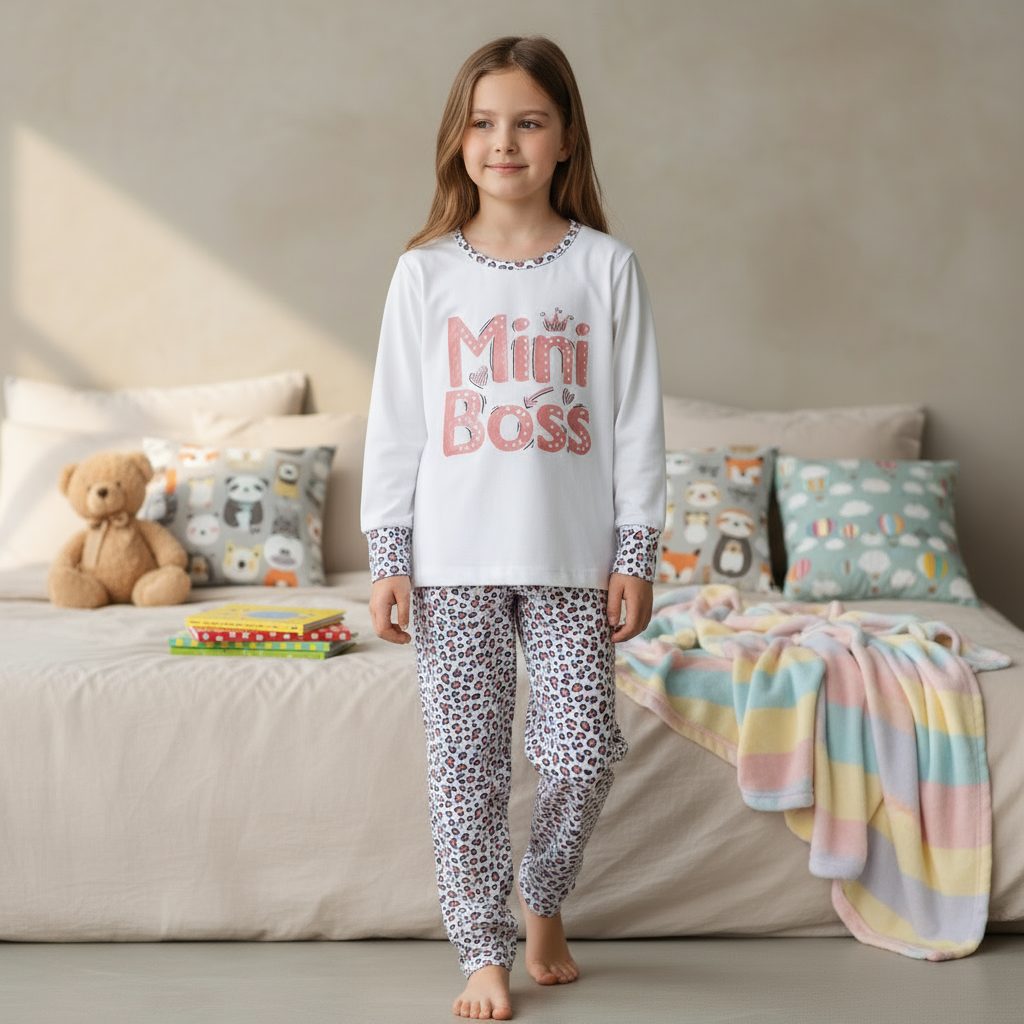 Udobje + moč = Mini Boss. Bombaž s pridihom elastana in patentki na rokavih ter hlačnicah, ker tudi mali šefi morajo dobro spati.