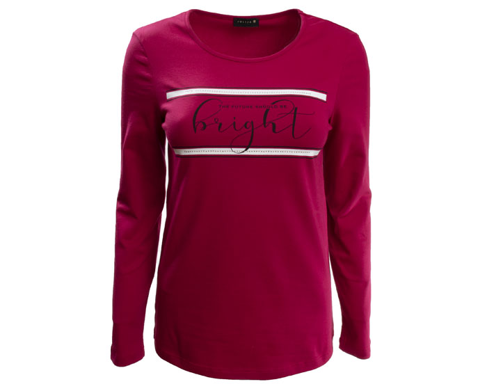 Udobna majica z dolgimi rokavi s potiskom in biserčki.